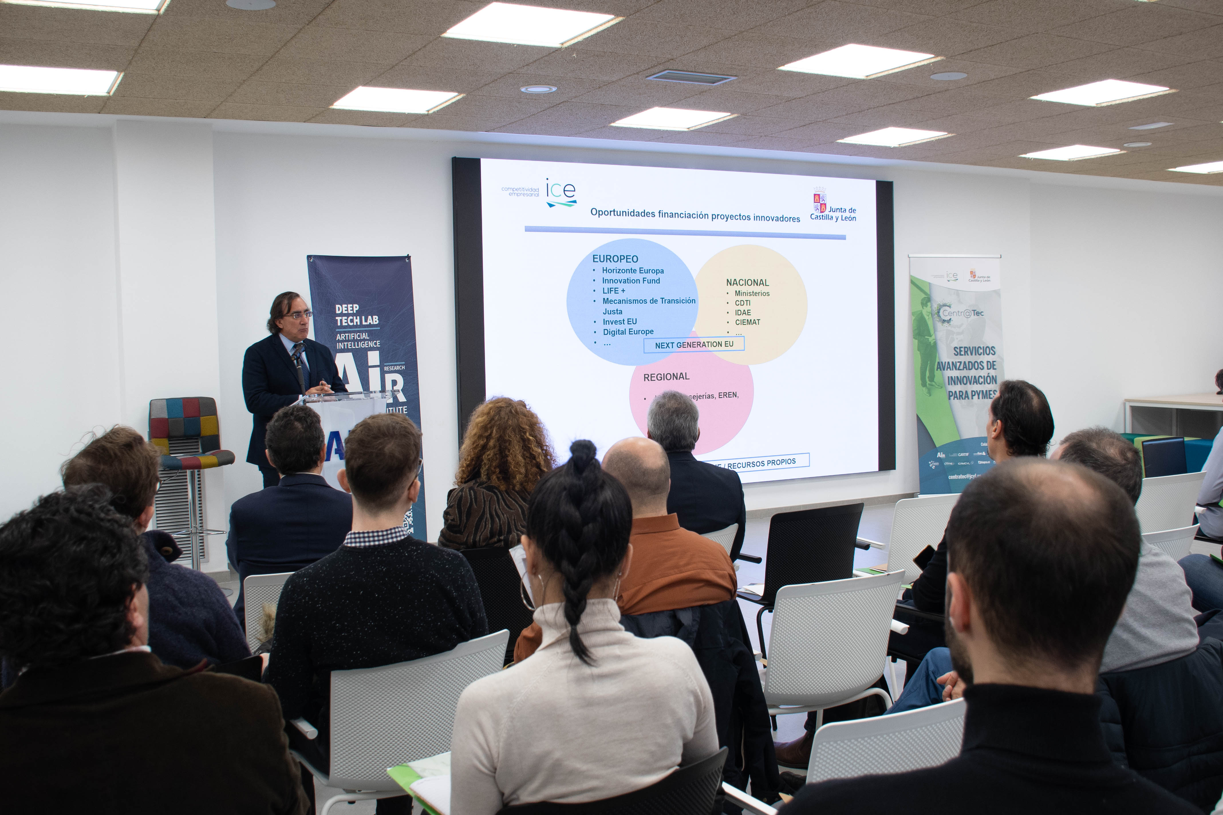 The Institute for Business Competitiveness of Castilla y León (ICE) in collaboration with AIR Institute has organised a conference on "Technological training for startups and SMEs: Generative Artificial Intelligence", an activity framed within the Centr@tec Programme that aimed to show entrepreneurs, mainly startups and SMEs, how they can transform their businesses through the incorporation and optimal development of this technology.