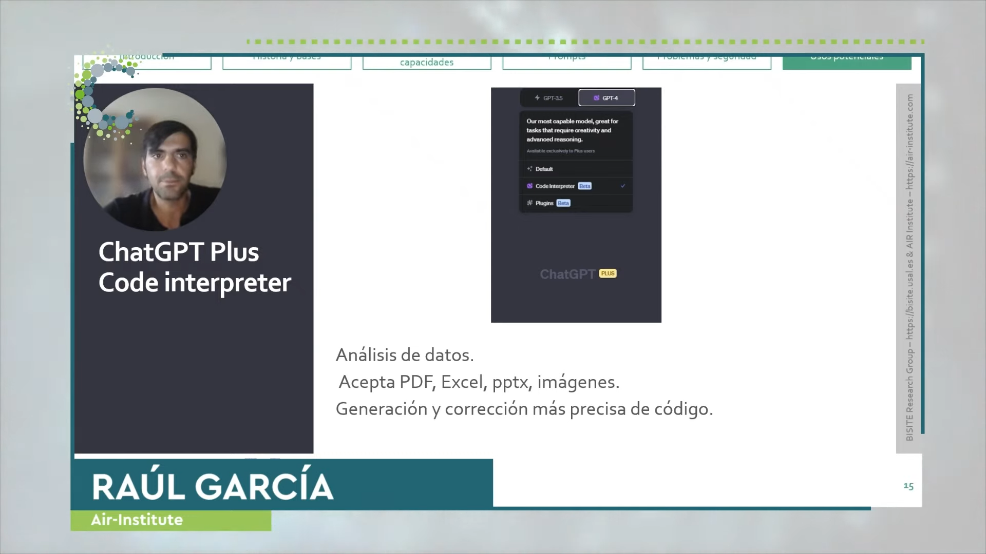 The initiative continued in online format with lectures by experts from the University of Salamanca and the AIR Institute. Raúl García and Pablo Chamoso analyzed different aspects of ChatGPT, Samuel Alonso focused on practical cases for the generation of applications and Juan Manuel Núñez gave an introduction and demonstration of Llama2.