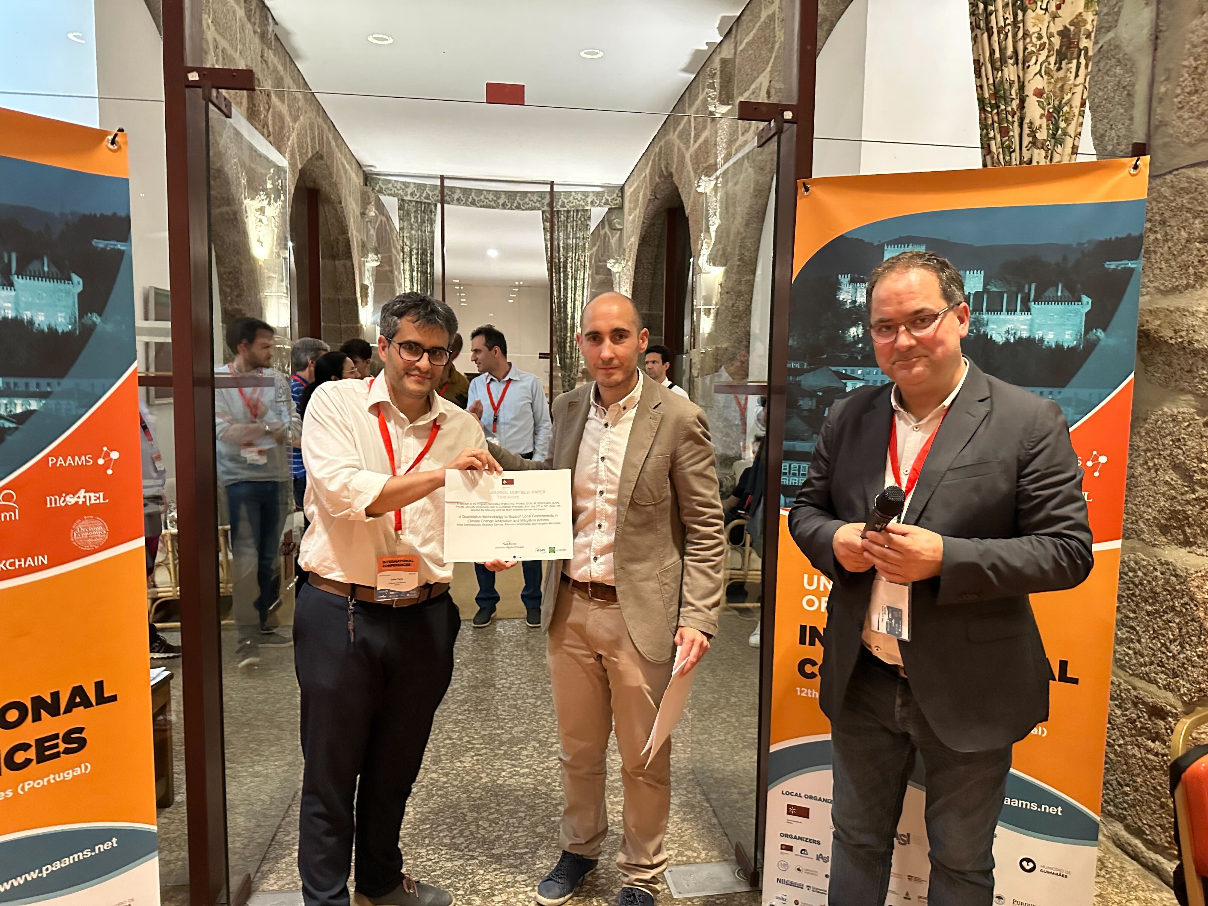 The second prize "Intelligent Systems in Health: an Architecture proposal" by António Chaves, Larissa Montenegro, Hugo Peixoto, António Abelha, Luís Gomes and José Machado. The third prize went to Nikos Dimitropoulos, Elissaios Sarmas, Marcelo Lampkowski and Vangelis Marinakis with the paper, "A Quantitative Methodology to Support Local Governments in Climate Change Mitigation and Adaptation Actions".