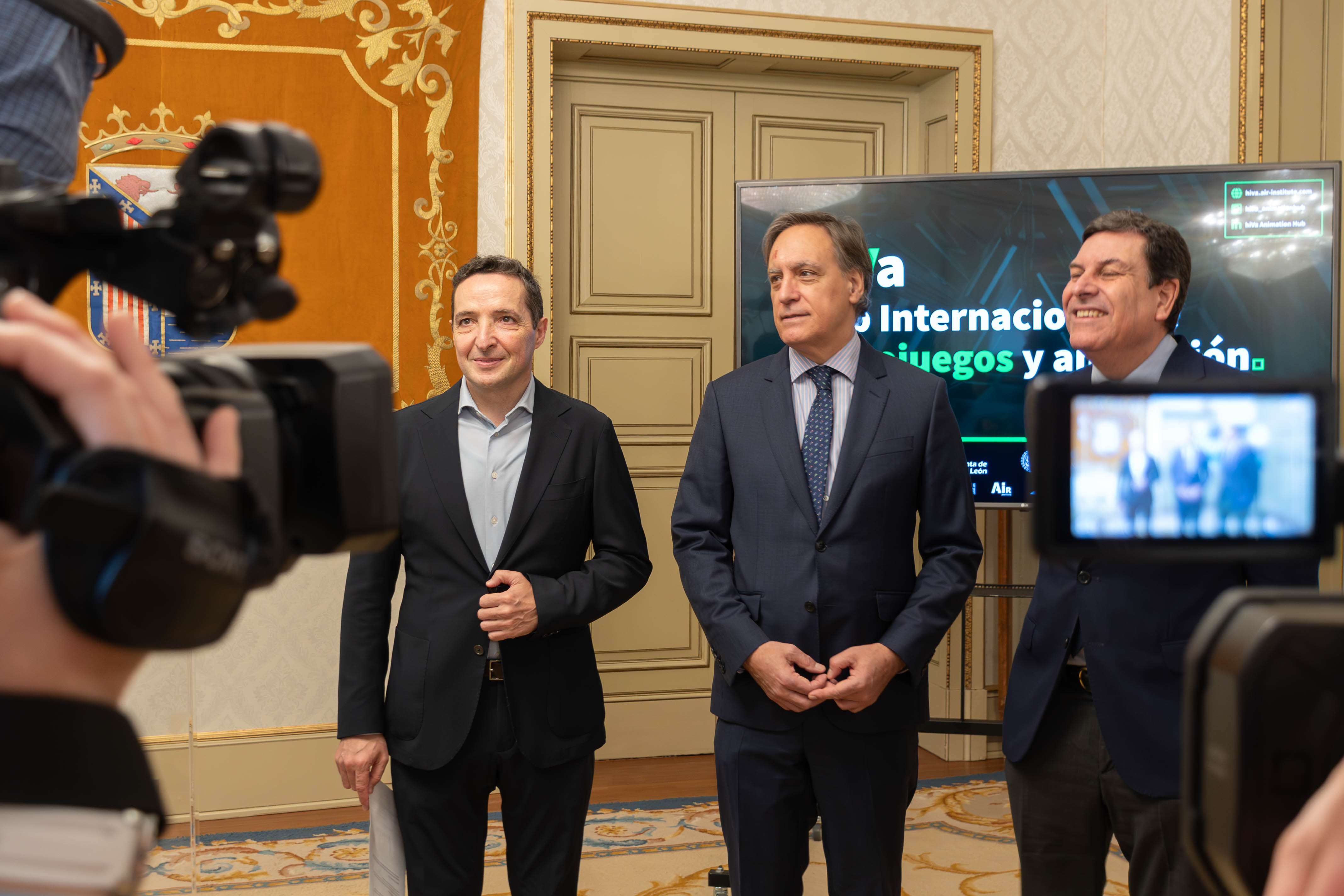 The Minister of Economy and Finance, Carlos Fernández Carriedo, the Mayor of Salamanca, Carlos García Carbayo, and the Professor of Artificial Intelligence at the University of Salamanca, Juan Manuel Corchado Rodríguez, have presented the project to develop an International Innovation Pole for Video Games and Animation in Salamanca.
