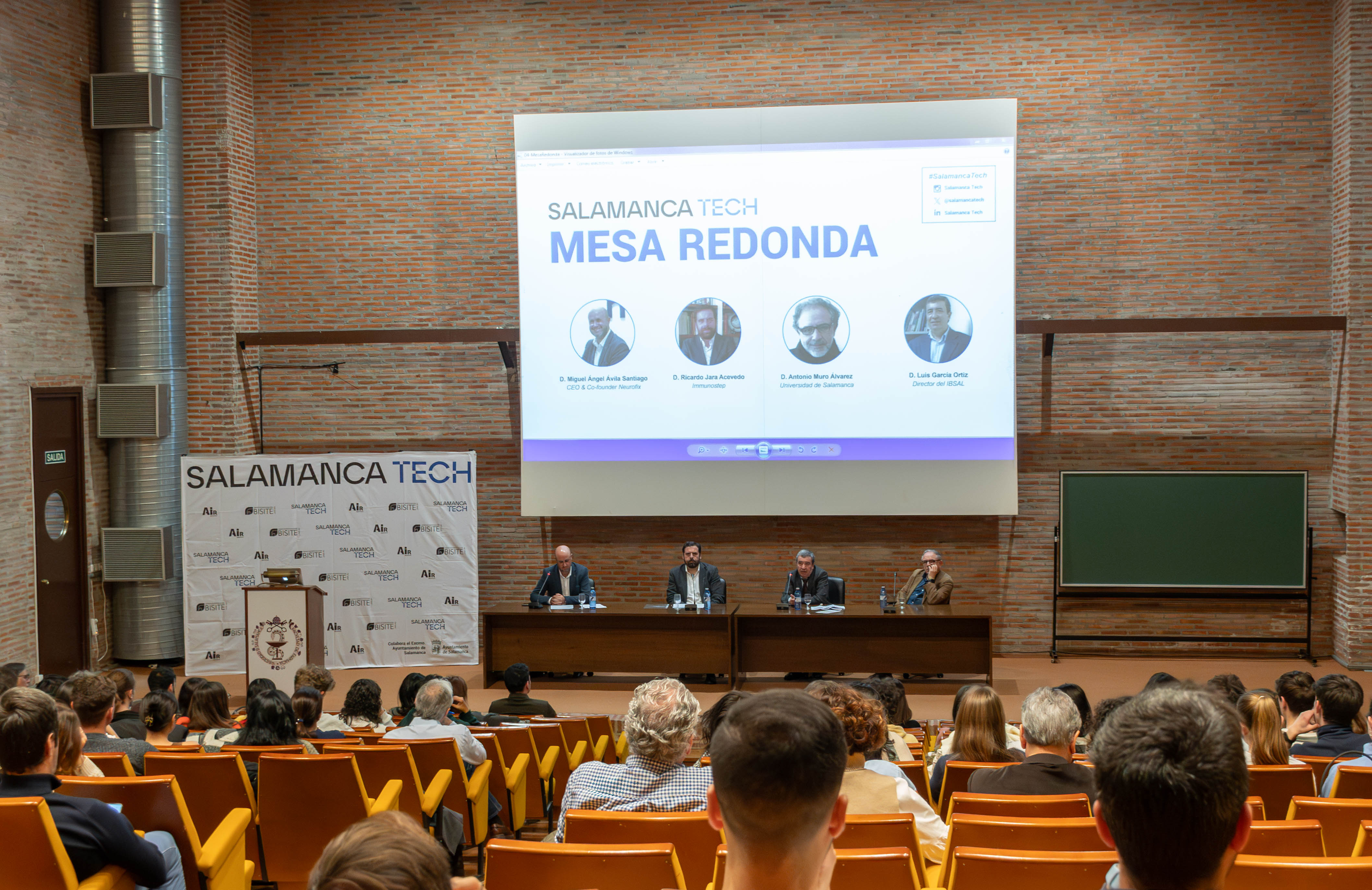 For his part, Juan Manuel Corchado, Professor of Artificial Intelligence at the University of Salamanca, stressed how technological advances are promoting the development of innovative ecosystems that boost economic growth and competitiveness at a global level, and gave as an example the case of the University of Salamanca Science Park and the future technology park with the City Council on the land of the former MercaSalamanca. "We offer you the possibility of being in charge of your future by becoming entrepreneurs or working in large pharmaceutical companies", said Corchado, highlighting how the creation of innovative ecosystems gives rise to successful projects such as those represented by Innmunostep, Neurofix and IBSAL.