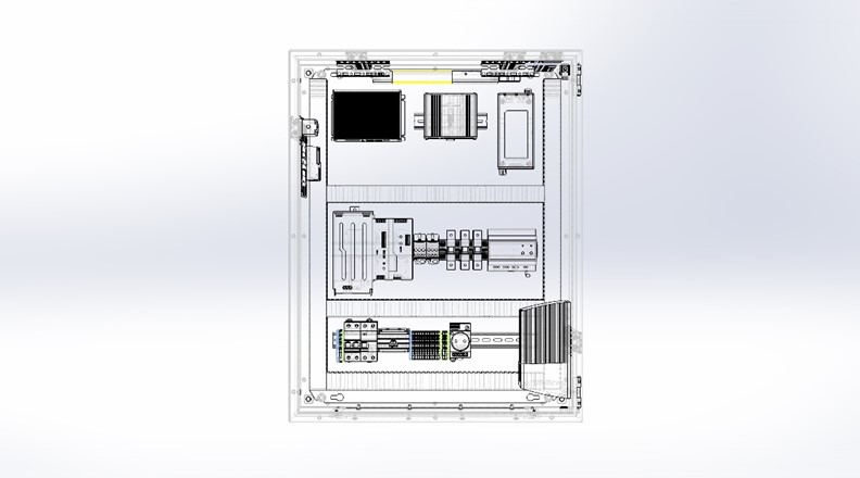 • Climate control system: To enhance outdoor operation, the climate control system will maintain optimum internal temperature and humidity inside the enclosure. This is achieved by means of fans, heat exchangers and heating elements. The internal organization of the electrical enclosure allows for adequate airflow for climate control and sufficient space for the necessary wiring and connectivity for all devices.