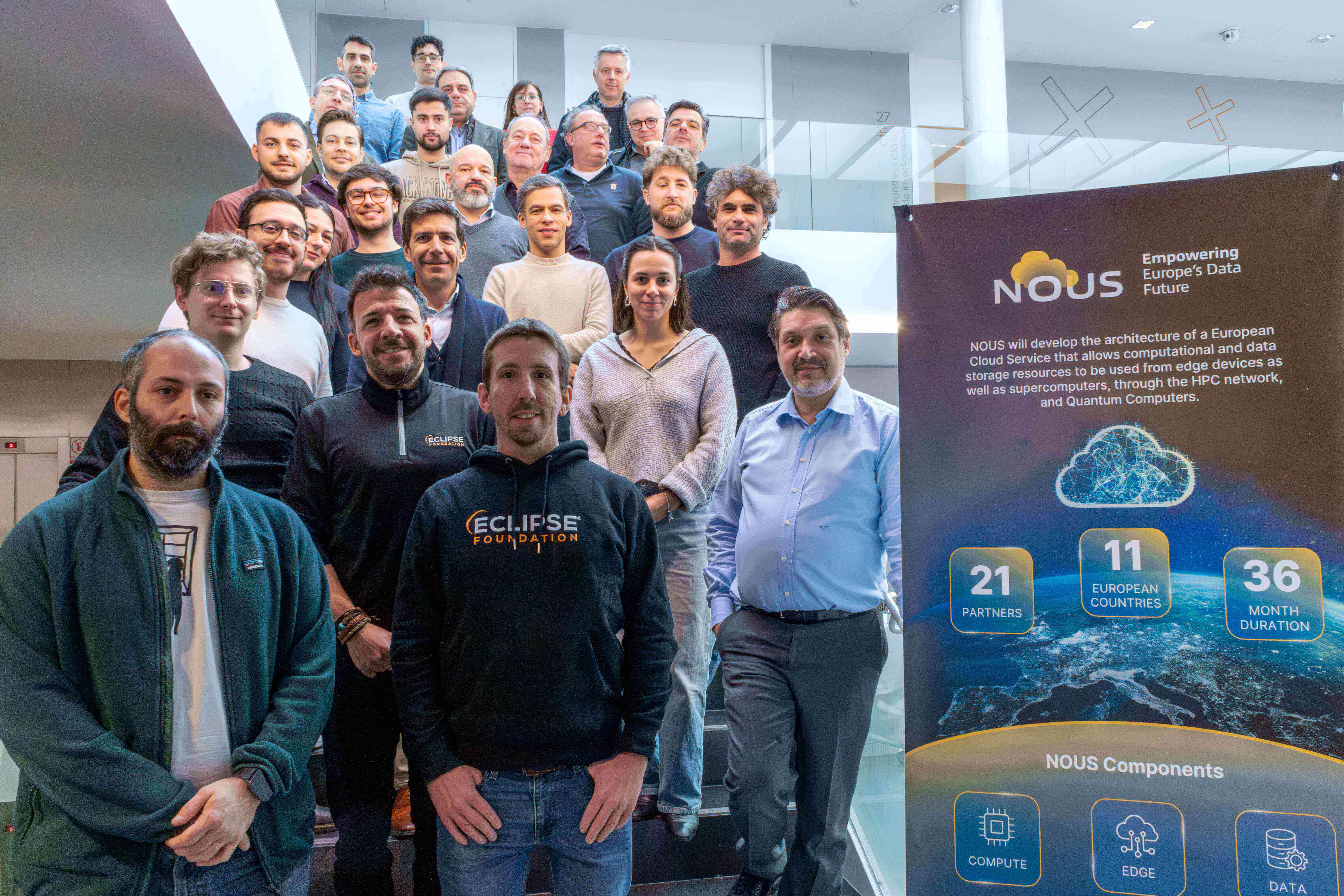 NOUS will develop the architecture of a European cloud service that enables the use of computational and data storage resources from peripheral devices, as well as supercomputers, through the HPC (High-Performance Computing) network, and quantum computers. NOUS will be an Infrastructure as a Service (IaaS)/Platform as a Service (PaaS) cloud provider, leveraging edge computing and decentralisation paradigms to incorporate a wide range of devices and machines into its computational flow to provide leaps in Europe's ability to process vast amounts of data. The project has defined 4 use cases that will allow testing the developed technologies in real scenarios faced by industry leaders. The NOUS architecture will be made open source to allow capitalisation by companies and organisations. In addition, a set of workshops and collaborative activities are planned with Data Spaces Support Centre, Gaia-X, FIWARE and EOSC driven by a strong consortium of 21 partners from 11 European countries.